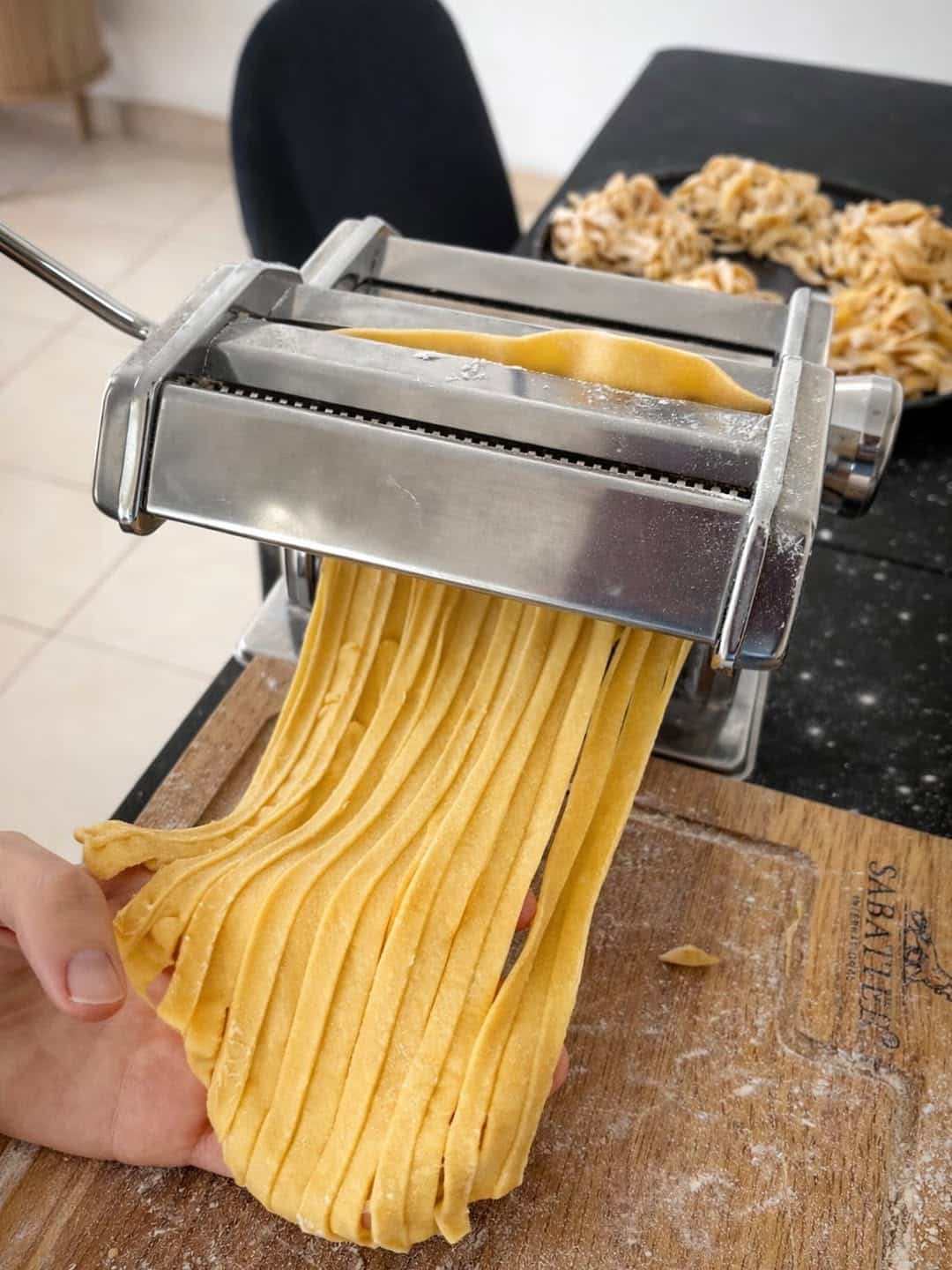 Une recette de pâtes fraîches avec seulement trois ingrédients de base. La pâte se pétrit rapidement et donne des tagliatelles tendres qui cuisent en quelques minutes. Beaucoup plus savoureuses que les pâtes industrielles.