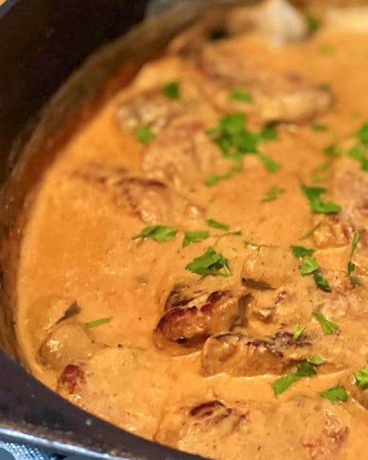 PlatsMijoté de porc aux champignons et fromage bleu
